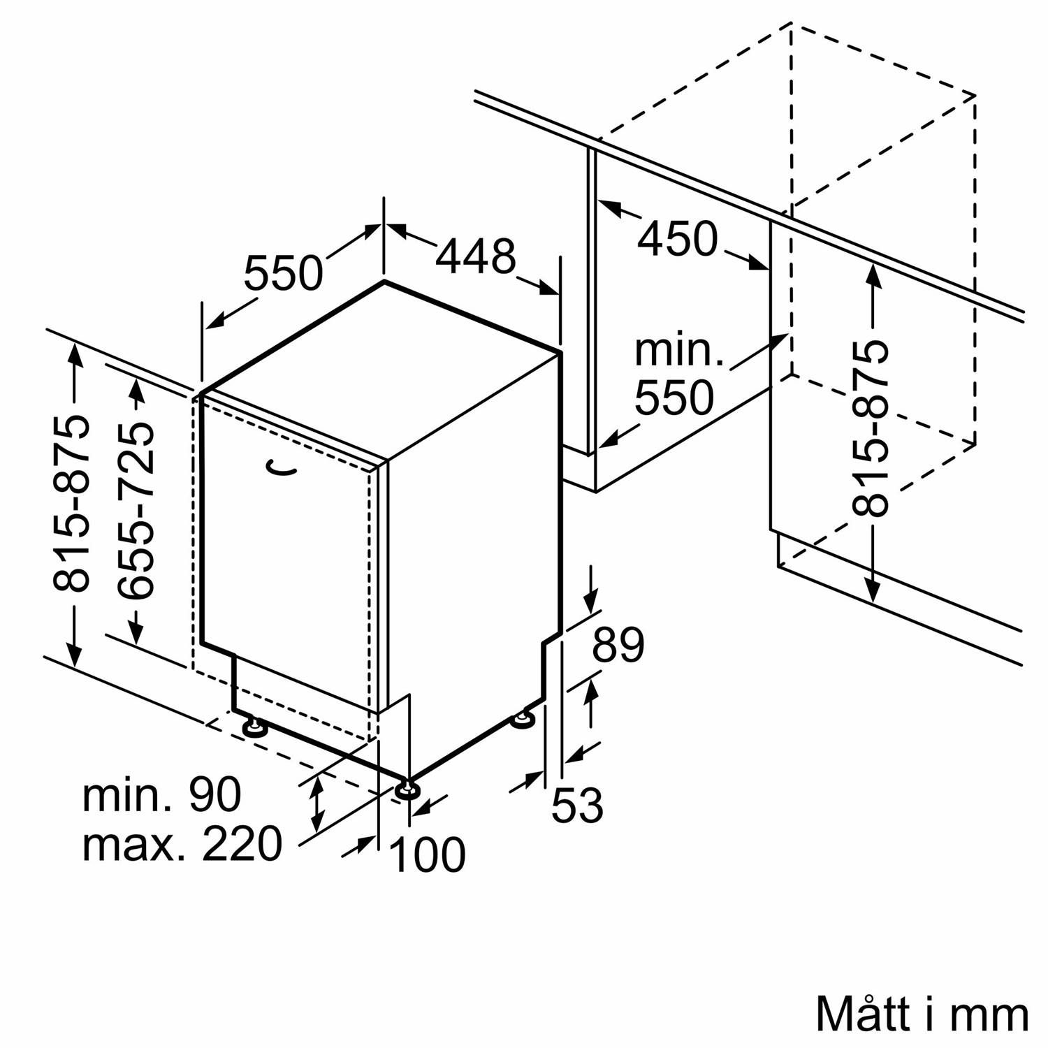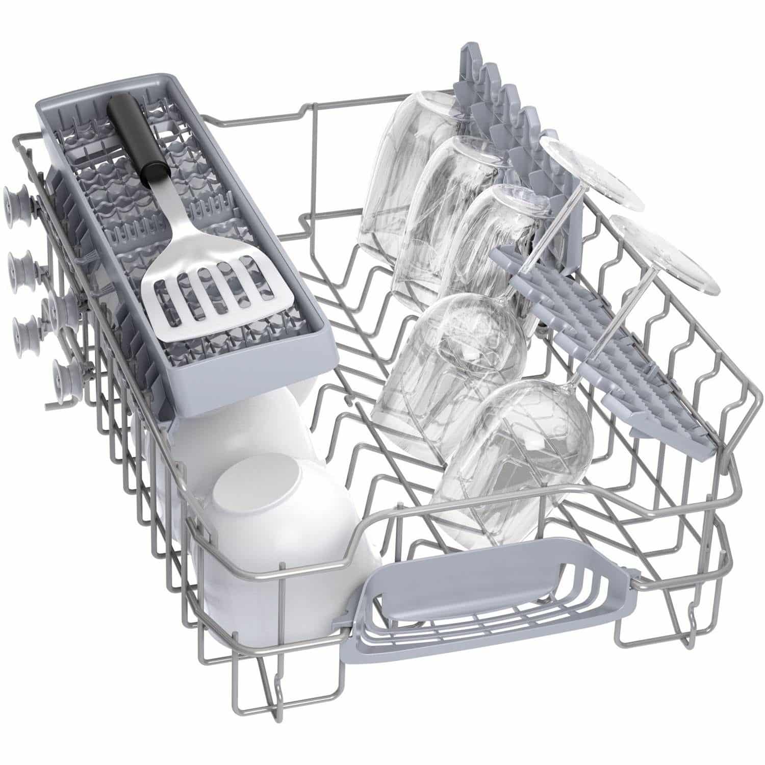 Bosch SPV2IKX10E er en smal (45 cm) opvaskemaskine til indbygning med køkkenlåge. Du supplerer dig selv med en tømrerlåge i samme design som resten af dine køkkenlåger.
