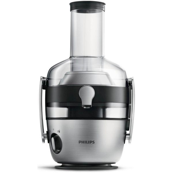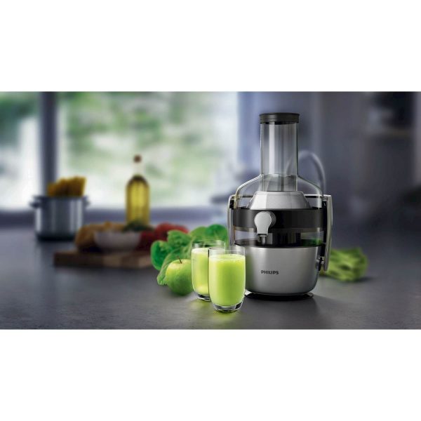 Philips’ unikke forrensningsfunktion giver dig mulighed for hurtigt at skylle din råsaftcentrifuge mellem forskellige centrifugeringer eller efter presning. Ved at hælde vand i presseblokken kan du skabe et springvand, der vasker uønskede rester væk. Takket være den polerede si er det meget nemt at rense rester med en køkkensvamp.